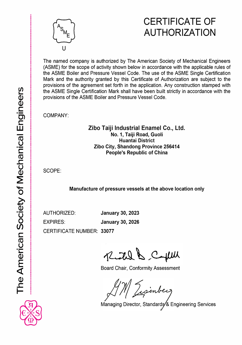 HOW TO CHOOSE淄博太極工業搪瓷有限公司專業制造搪玻璃設備、氟塑料設備及碳鋼、不銹鋼壓力容器的大型企業?,F有員工1000余人,注冊資金11900萬元,占地600畝,生產車間19萬平米,凈資產超20億元。太極以人為本,單用于職工的居住生活投入已達3億,使工者有其房,家人生活及孩子....[查看更多]
